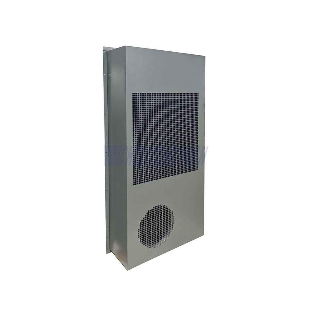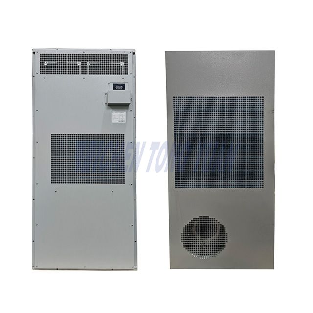 AC 5000W Cabinet Air Conditioner Cooling Princple : the high-pressure refrigerant liquid in the system enters the evaporator and evaporates to absorb heat of the air in the cabinet, so the air is cooled, and the refrigerant that evaporates into gas in the evaporator is inhaled by the compressor and compressed into the high-pressure and high-temperature refrigerant gas, which enters the condenser and cooled to refrigerant liquid, and then re-enters the evaporator to cool the indoor air, and circulates accordingly.