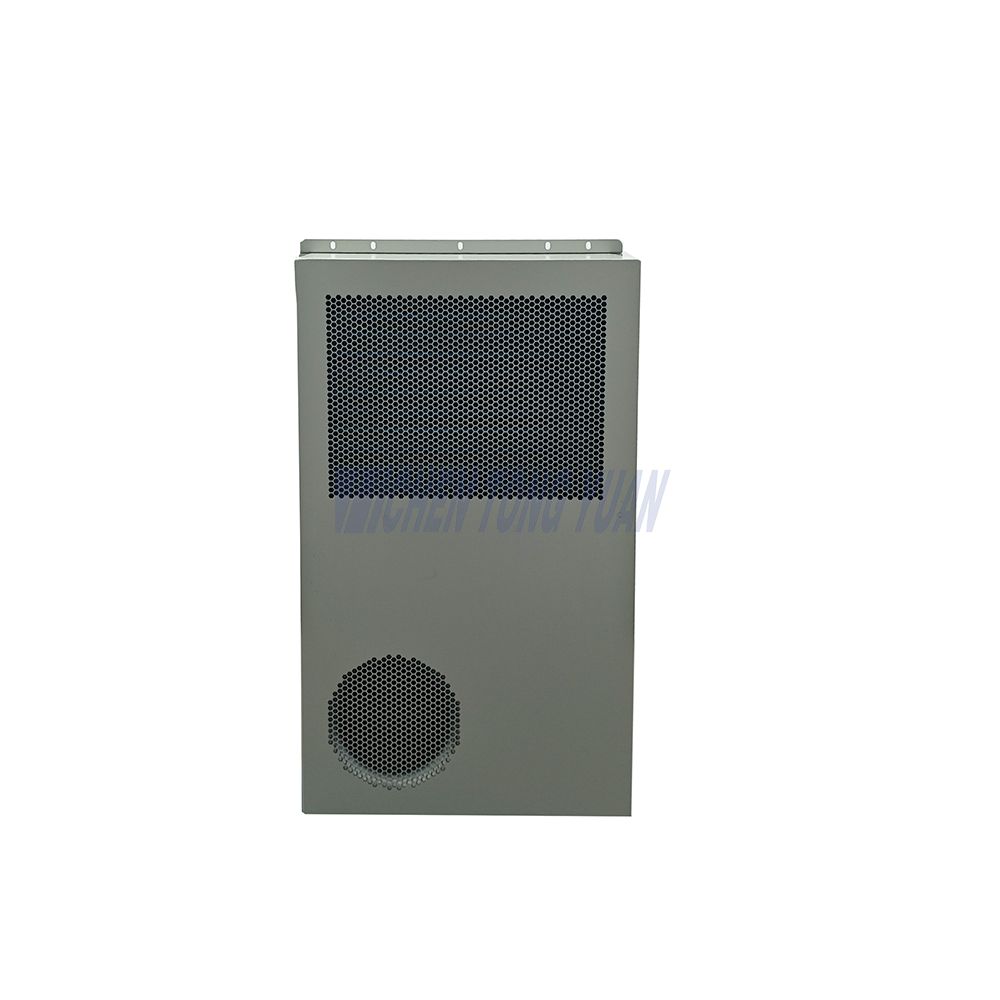 Enclosure air conditioning for lithium battery cabinet Cooling Princple : the high-pressure refrigerant liquid in the system enters the evaporator and evaporates to absorb heat of the air in the cabinet, so the air is cooled, and the refrigerant that evaporates into gas in the evaporator is inhaled by the compressor and compressed into the high-pressure and high-temperature refrigerant gas, which enters the condenser and cooled to refrigerant liquid, and then re-enters the evaporator to cool the indoor air, and circulates accordingly.
